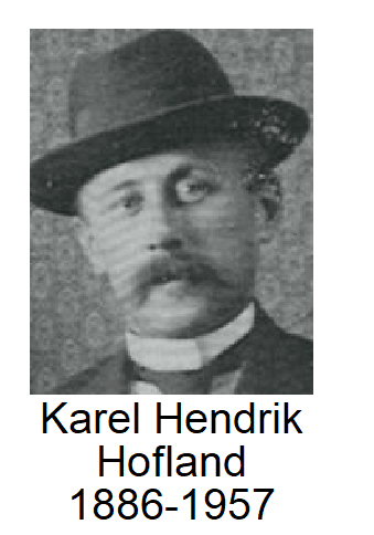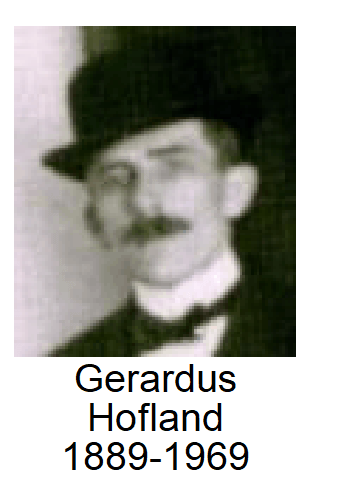 | 15. | Karel Hendrik Hofland, geb. te Naaldwijk op 24 jul 1886, tuinder, ovl. te Naaldwijk op 5 jan 1957, tr. te Naaldwijk op 10 nov 1910 met Adriana Catharina van der Kaaij, dr. van Jacobus van der Kaaij en Maria Geertruida van der Kruk, geb. te Naaldwijk op 10 dec 1889, ovl. te Naaldwijk op 31 jul 1955. Uit dit huwelijk geen kinderen. |