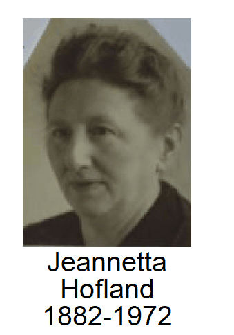 | 14. | Jeannetta Gozerina Hofland, geb. te Naaldwijk op 1 aug 1882154, ovl. te 's-Gravenhage op 5 aug 1972, tr. te Naaldwijk op 7 jun 1906 met Philip Wilhelm Christiaan Rothengatter, zn. van Cornelis Rothengatter en Jacoba Wilhelmina van Dijke, geb. te Hoorn op 23 sep 1884, gemeenteambtenaar, ovl. te 's-Gravenhage op 27 feb 1973. Uit dit huwelijk 3 kinderen. |