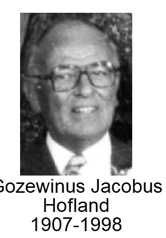 | 13. | Jacobus Marinus Hofland, geb. te Naaldwijk op 12 jul 1872126, boer, ovl. te Orange City[Usa] op 28 dec 1956, tr. te Orange City[Usa] op 4 nov 1903 met Grietje Bonnes, dr. van Jan Bonnes en Engelina Eerkes, geb. te Wildervank op 14 feb 1884, ovl. te Orange City[Usa] op 14 dec 1972. Uit dit huwelijk geen kinderen. |